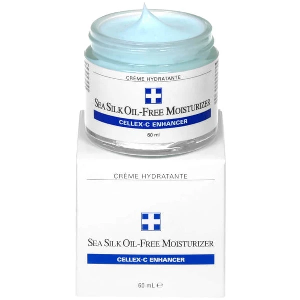 Cellex-C Sea Silk Oil-Free Moisturizer is a soft sea-foam colored moisturizer containing a rich medley of sea botanical extracts—Omega plankton, marine algae, aquatic vegetable protein, DMAE complex, watercress extract and seaweed biopeptides—designed to achieve the ultimate, light-weight, oil-free moisturizer.