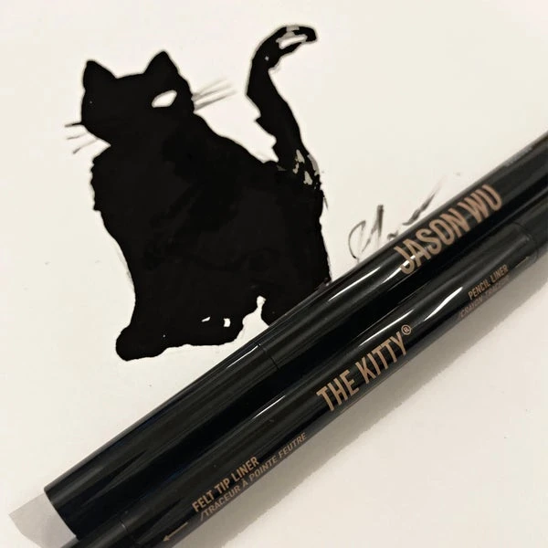 The Kitty – Dual Liner – is an intense black, two-sided eyeliner that is both waterproof and offers a professional, matte finish. This multitasking liner features a mechanical pencil side for smudging and creating shadows around the eye + a felt tip side for defining and completing the look.